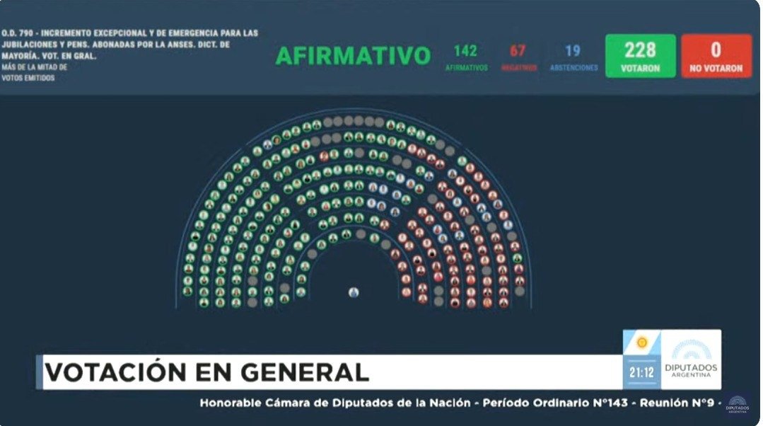 La propuesta fue aprobada con 160 votos afirmativos, 72 negativos y 8 abstenciones. El proyecto prevé un nuevo cálculo de movilidad jubilatoria que contempla una actualización mensual por inflación más un incremento adicional del 8,1%, con el objetivo de recomponer el poder adquisitivo perdido en los últimos meses.